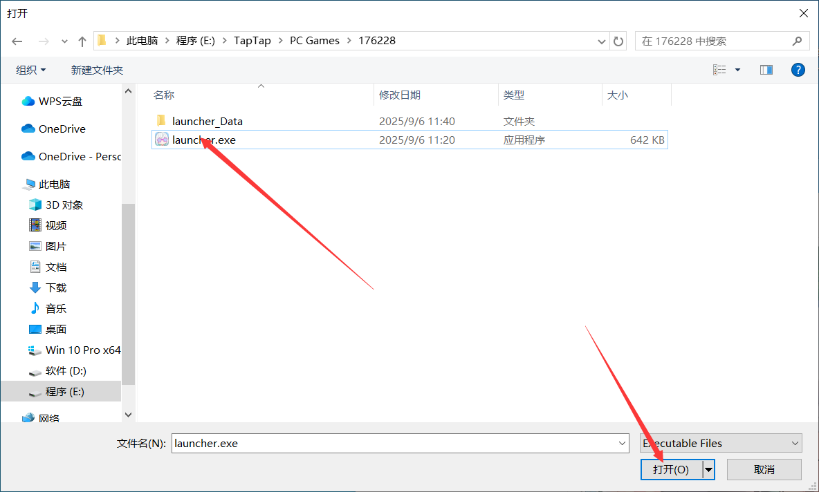 3.选择游戏客户端程序 launcher.exe.