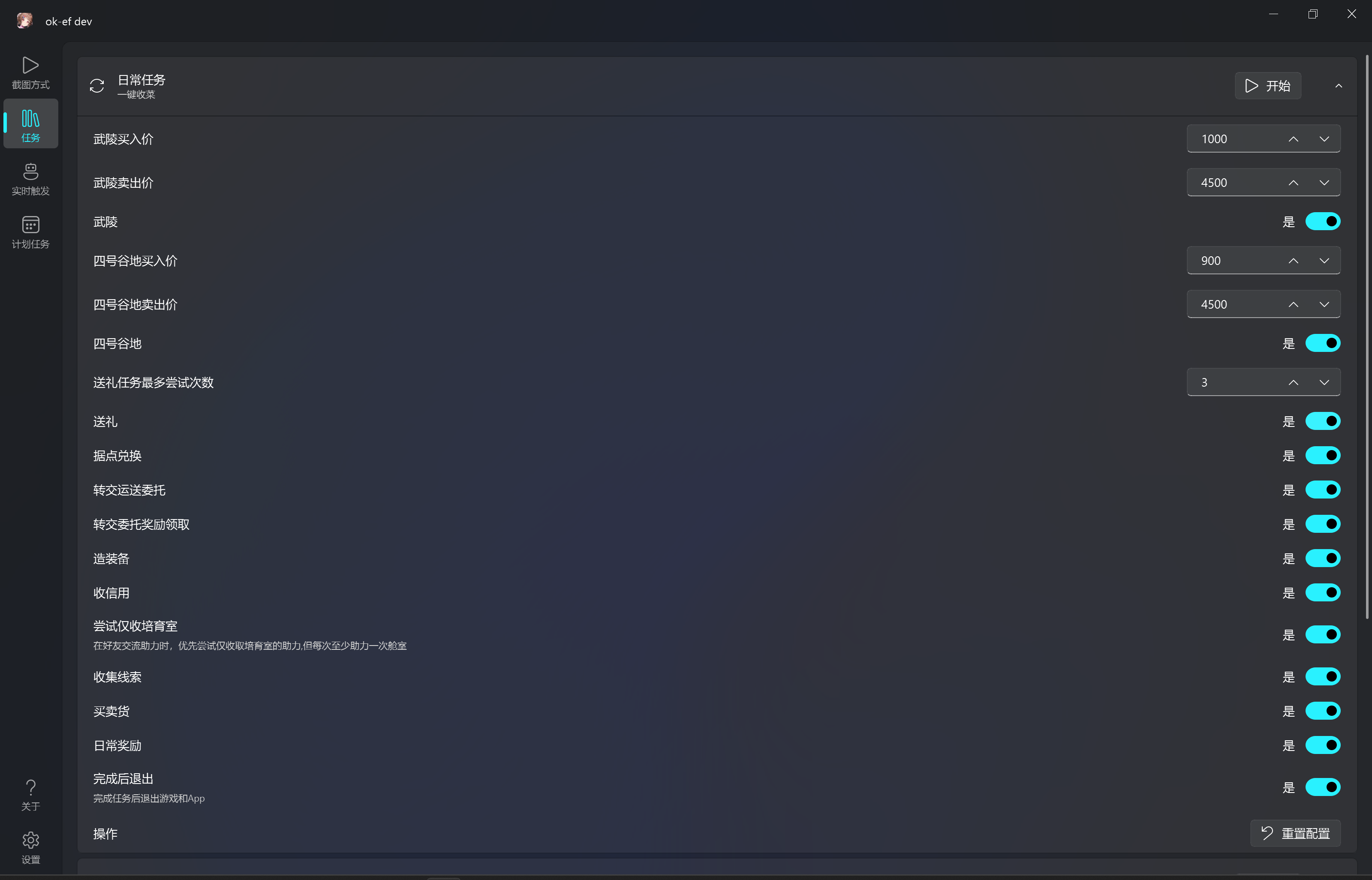 日常任务(送礼、据点兑换、委托转交、领取委托奖励、造装备、收信用、收集线索、买卖货、日常奖励等)