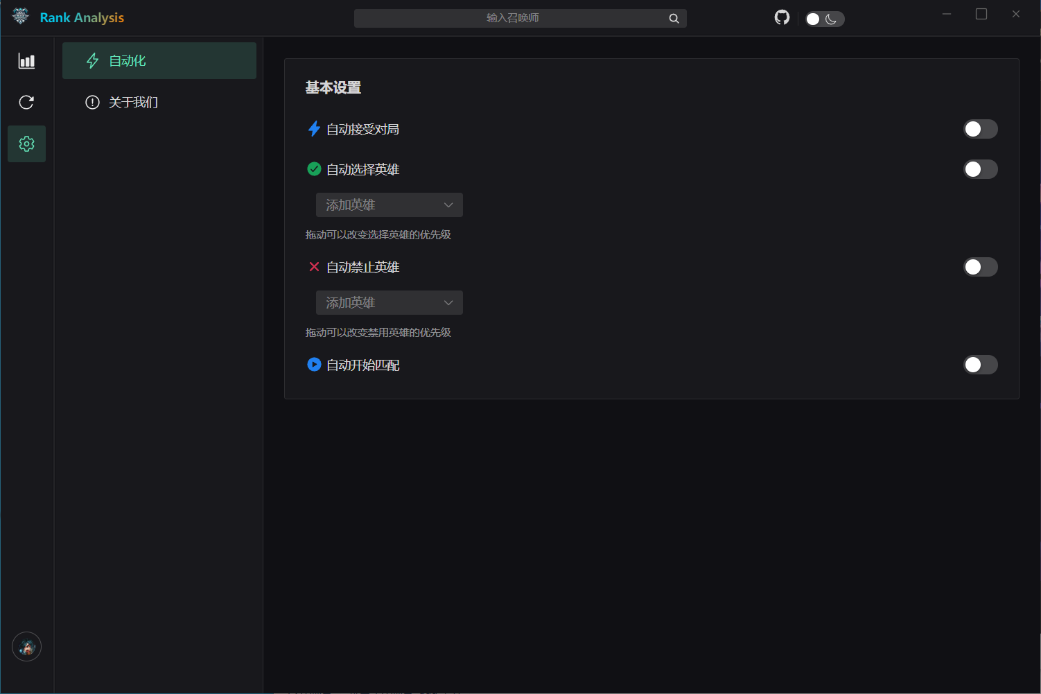 自动匹配:自动开始寻找对局。