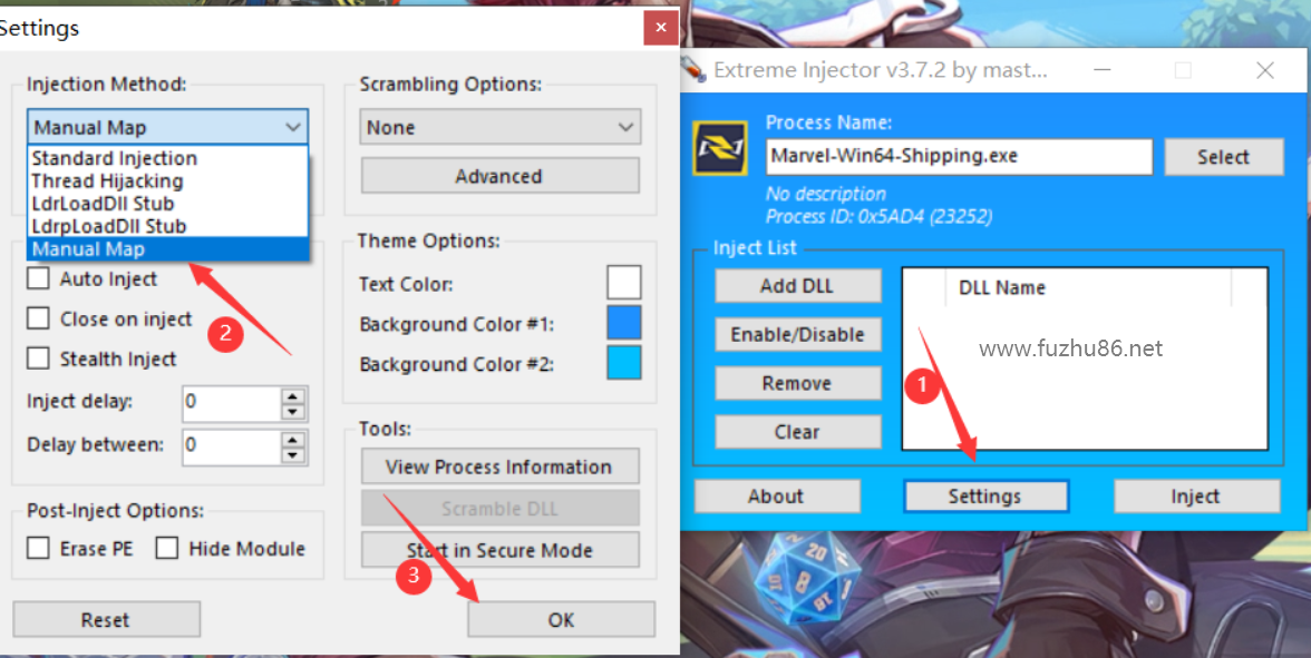 3.设置注入器注入方式为Manual Map,如下图: